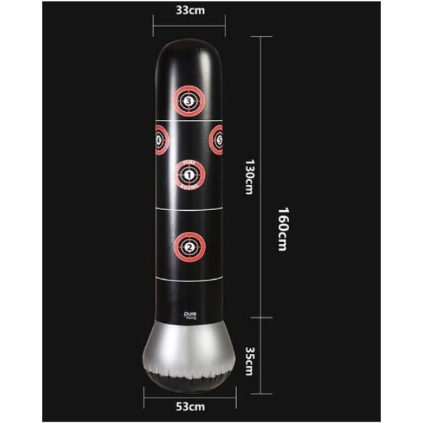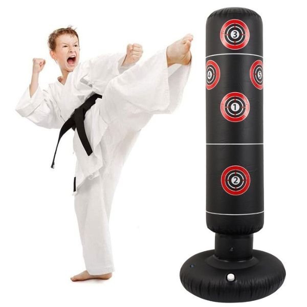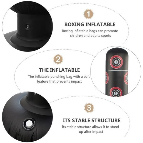 The inflatable and foldable design of the punching bag allows for convenient storage in a closet or bag, making it easy to save space at home. You can even take it with you when you travel to maintain your workout routine. It is a perfect solution for those who value space and are often on the go.