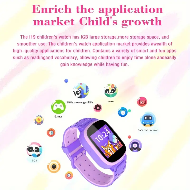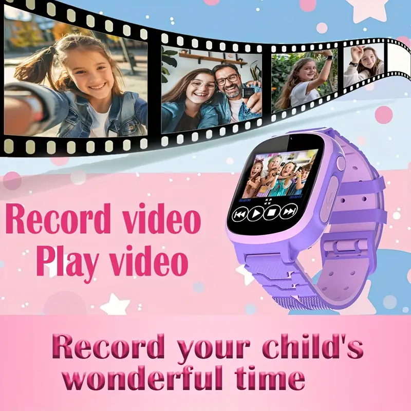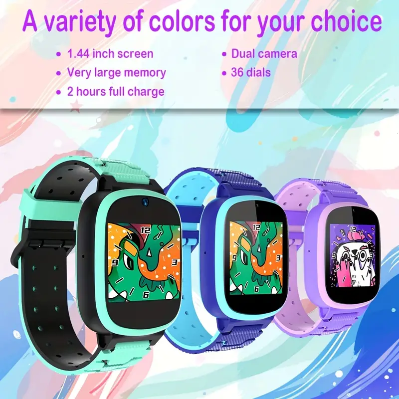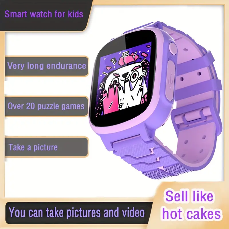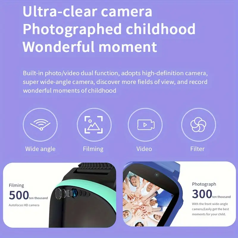 kids smart watch with hd camera 119mb storage 20 educational games   plastic case electronic movement silicone band blue details 2