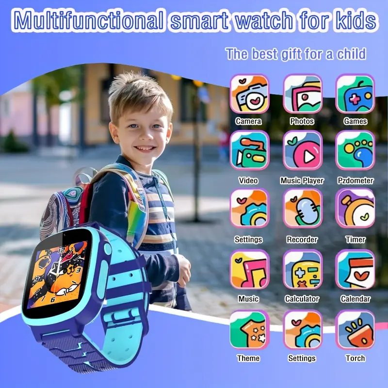 kids smart watch with hd camera 119mb storage 20 educational games   plastic case electronic movement silicone band blue details 0