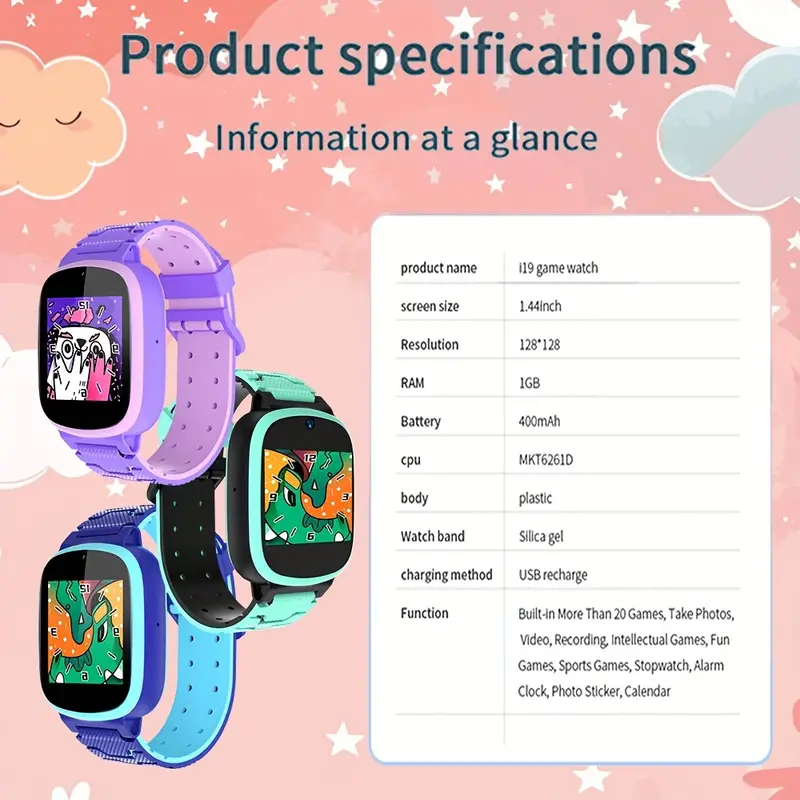 119MB Storage, 20 Educational Games, Digital Display, Plastic Case, Electronic Movement, Silicone Band, Blue