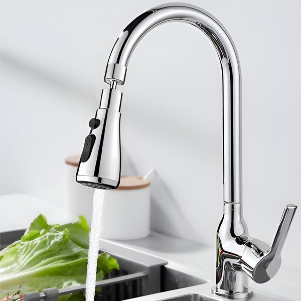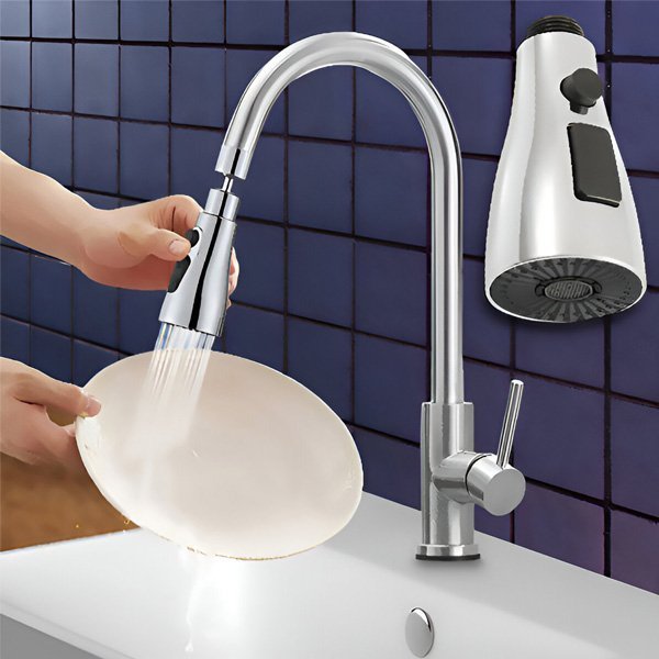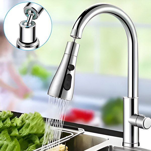 This kitchen faucet extension allows thorough cleaning from any angle while saving water.